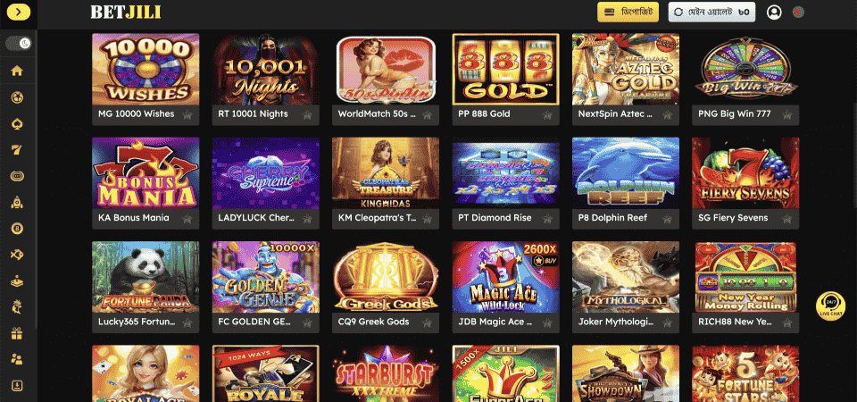 Betjili তে গেম কালেকশন রয়েছে ১৫০০ এরও বেশি! এখানে রয়েছে ক্লাসিক স্লট, ভিডিও স্লট, লাইভ টেবিল গেম, রুলেট, ব্যাকারাট, ব্ল্যাকজ্যাকসহ আরও অনেক জনপ্রিয় গেম।